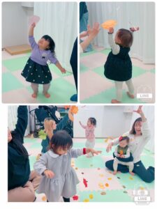 葉っぱの不規則な動きが楽しくて、「もう1回、もう1回!」と、何回も葉っぱを落として、盛り上がりました。