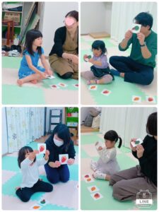 秋の絵カードで、拍子を学びました。