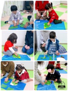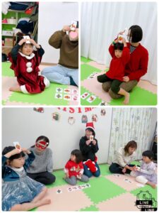 「あっ、サンタだ。 ツリーじゃない?」と、しっかりと耳を傾けて、集中して取り組む姿が見られました。